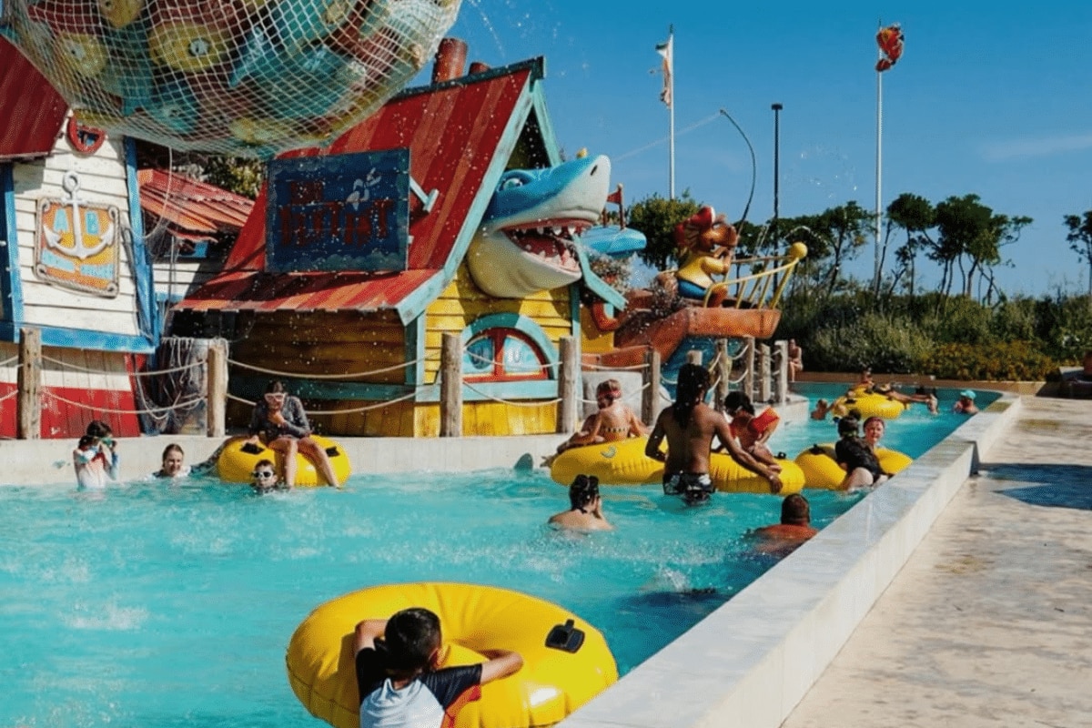 Sześć basenów, w tym brodziki dla najmłodszych, duży plac zabaw oraz park linowy dla dzieci czynią ten kemping bardzo atrakcyjnym dla rodzin.