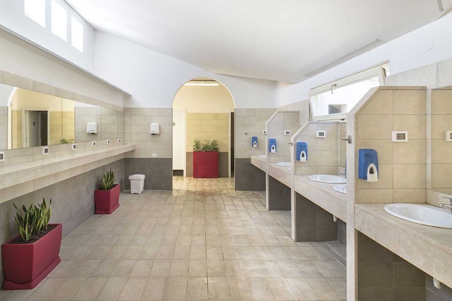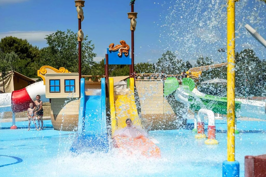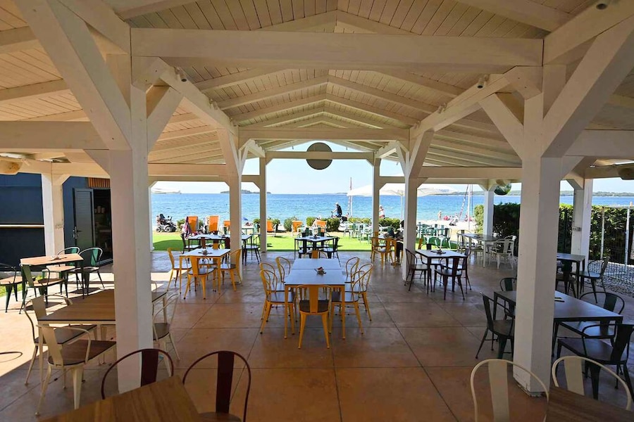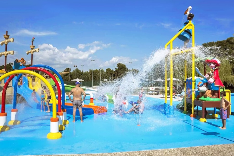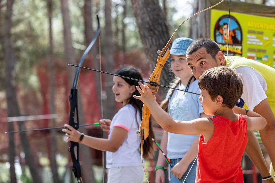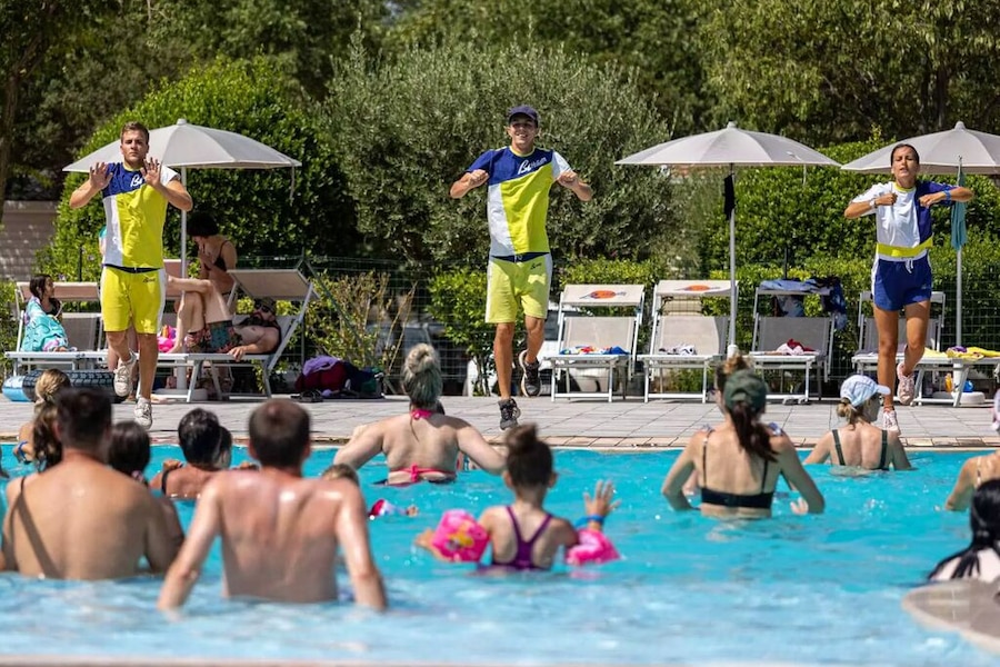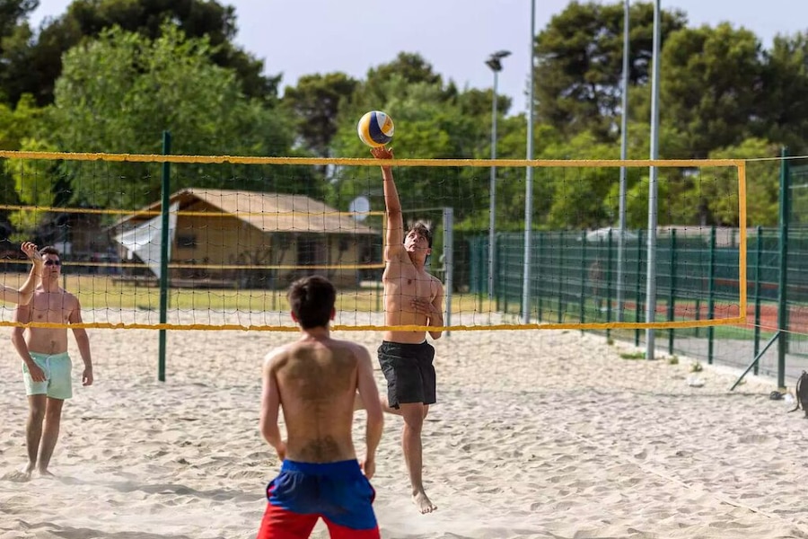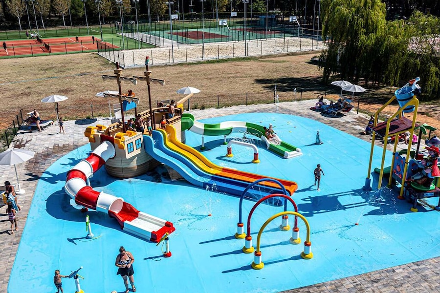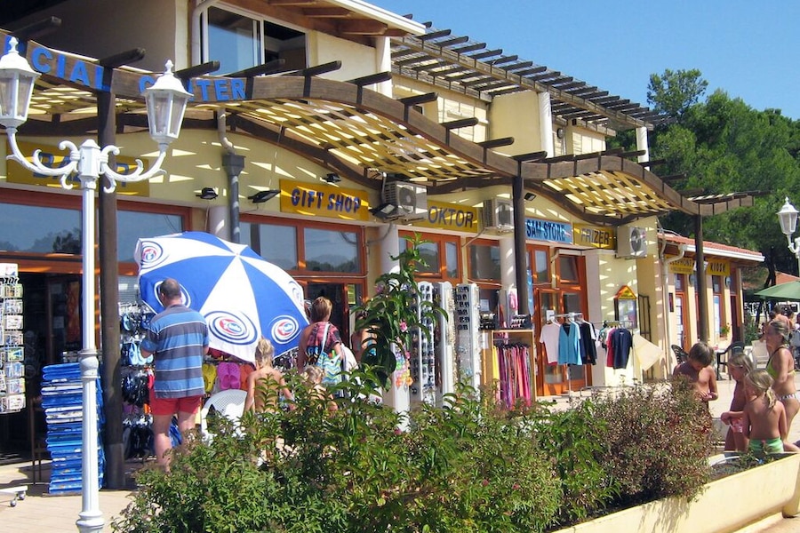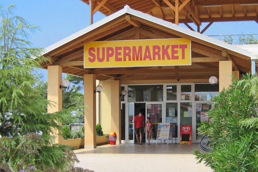 Supermarkt, geldautomaten, meerdere restaurants, shopjes, sportvelden, trampolinepark, klimparcours voor meerdere niveau's en kinderanimatie. Ruim voldoende vuilcontainers die ook dagelijks geleegd worden. Toegang tot camping, zwembaden en strand werkt met een polsbandje waardoor niet iedereen zomaar het park op kan lopen. Wat wij wel een prettig gevoel vonden. Aan het strand zijn ook meerdere barretjes waar het s avonds gezellig zitten is. Lopend langs de zee nasr Fazana is ook zeker leuk.