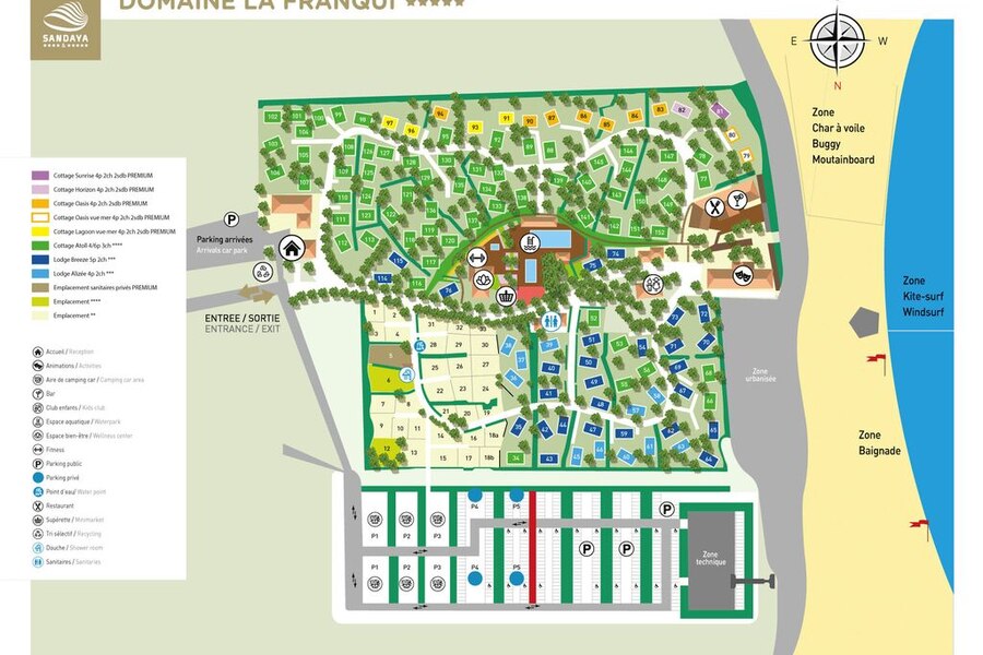 Szukasz spokojnego wypoczynku nad Morzem Śródziemnym? Dzięki doskonałej lokalizacji między jeziorem La Palme i plażą Les Coussoules, ten kemping jest doskonałym wyborem! Rozciągnij ręcznik na plaży lub weź udział w zabawie - jest tu wiele możliwości. Na kempingu Sandaya Domaine la Franqui można spróbować różnych aktywności, takich jak sporty wodne i jazda konna. A dzięki oszałamiającym krajobrazom regionu Aude wokół nie brakuje miejsc do zwiedzania.