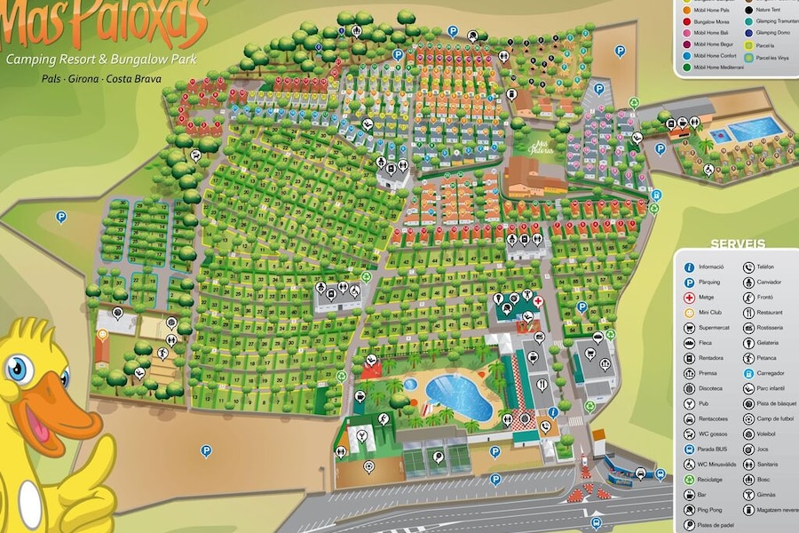 Kemping Mas Patoxas to przestronny kemping tarasowy z dużą ilością drzew. Na jednym końcu kempingu znajdują się szerokie ścieżki z miejscami kempingowymi. Domki mobilne i domki murowane mają swoją własną sekcję. Kemping przyciąga dużą liczbę rodzin, które lubią tu wracać, co nie dziwi, gdy widzi się dwa duże baseny. To samo dotyczy wielu obiektów sportowych i wspaniałych animacji. Nie trzeba opuszczać kempingu, aby zrobić zakupy.