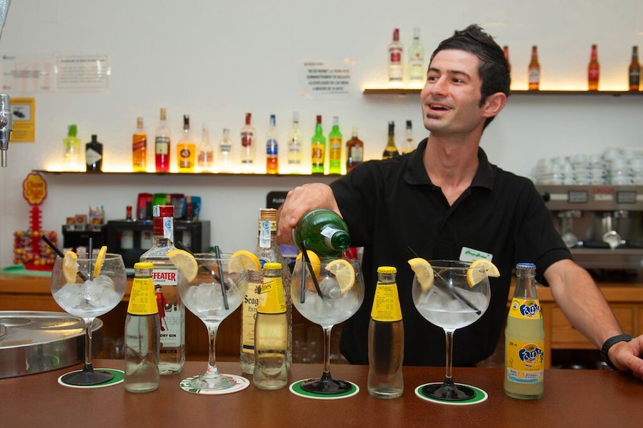 Als je (s’avonds) op terras zit bij animatie zelf je drankje halen.