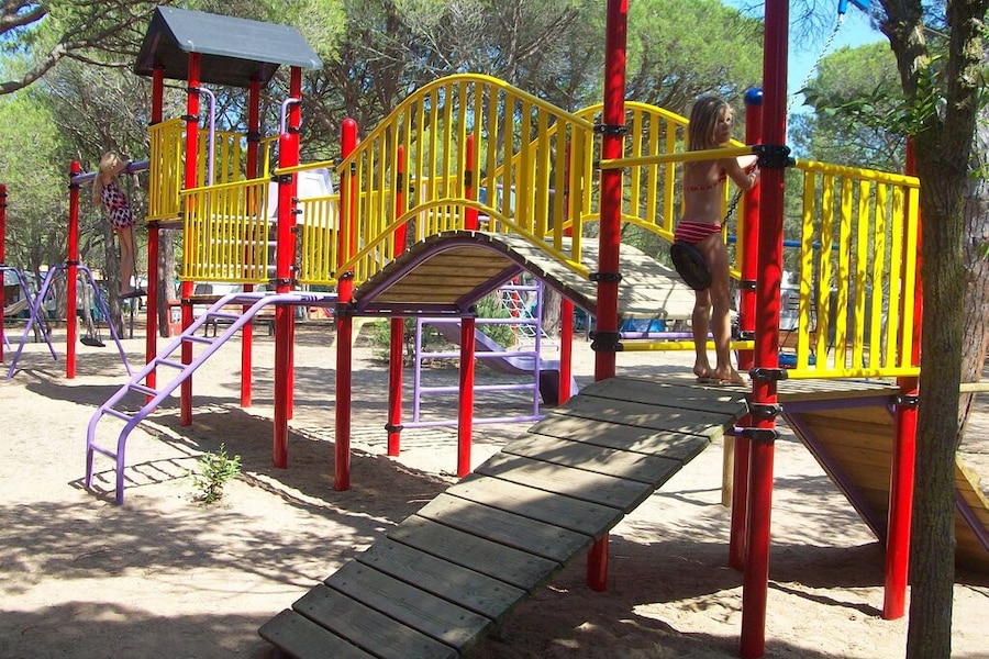 Camping familial sous les pins, avec de nombreux jeux et équipements : pisicine, tennis, terrain de basket, de football, trampoline gonflable... et accès direct à la mer. Restaurant et supermarché. C\'est parfait si on ne souhaite pas beaucoup bouger