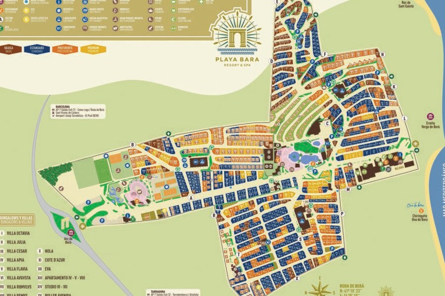 Ten uroczy rodzinny kemping położony jest w ogrodzie botanicznym na hiszpańskim wybrzeżu Costa Dorada. Oznacza to wakacje na kempingu w całkowicie tropikalnej atmosferze. Okolica Playa Bara oferuje wszelkie udogodnienia. Jest do dyspozycji duży supermarket z produktami z Hiszpanii i wielu innych krajów, restauracje, restauracja na wynos, bary (przekąskowe), bankomat i sklep z pamiątkami. Kemping znajduje się w pobliżu miasta Roda de Barà, między Barceloną a Tarragoną. Można pływać i zażywać kąpieli słonecznych w otoczonym palmami basenie. Jeśli chcesz się zrelaksować po męczącym dniu, jest do dyspozycji sauna i centrum urody. To wspaniały sposób na zakończenie wakacyjnego dnia w Hiszpanii.