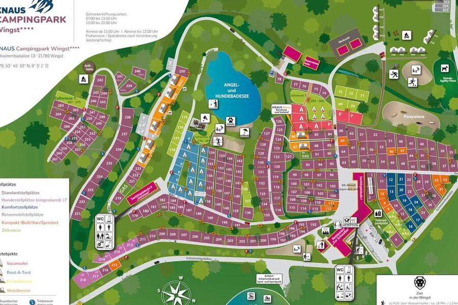 Nettes Personal, leider ist keine wirkliche Stellplatznummerierung vorhanden, und die Stromkästen sind meist weit weg vom Stellplatz, Wasseramschluss fehlt am Platz ganz , Sanitärenanlagen veraltet aber immer sauber