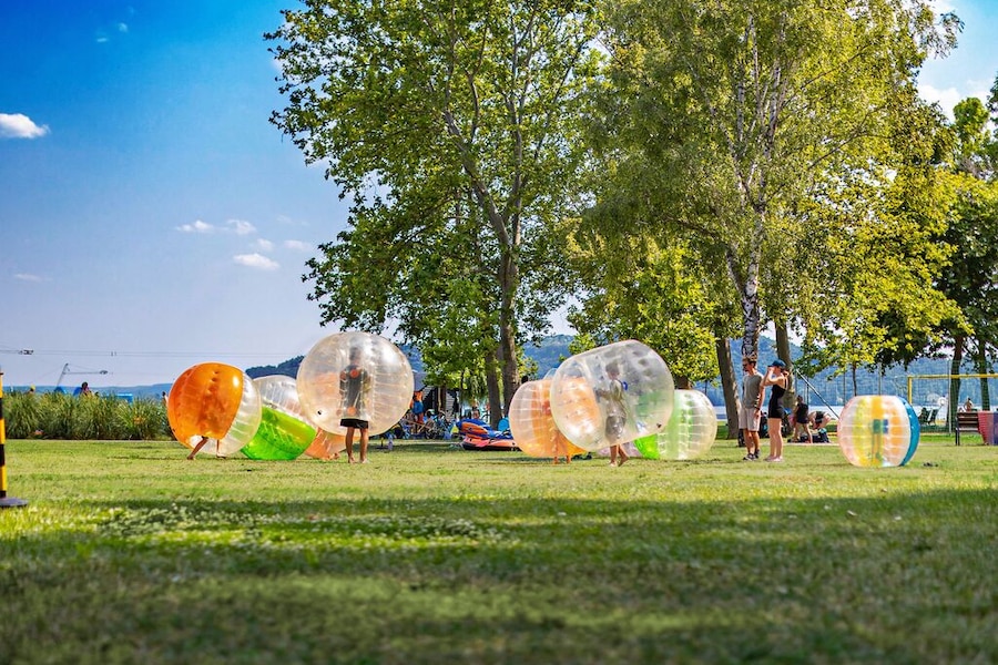Balatontourist Camping & Bungalows Füred jest ładnym, dużym kempingiem nad jeziorem Balaton na Węgrzech. Jezioro Balaton o długości 80 km i średniej szerokości 8 km jest największym jeziorem w Europie Środkowo-Zachodniej.