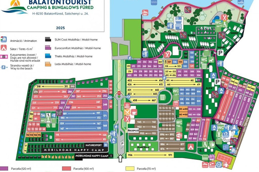 Zobacz tutaj mapę kempingu Balatontourist Camping & Bungalows Füred. Mapę kempingu można również pobrać w formacie pdf.