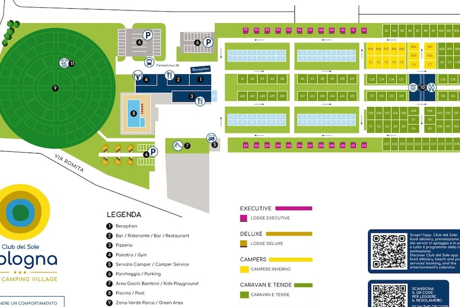 - Transport publiczny w pobliżu kempingu (do 0,5 km)
