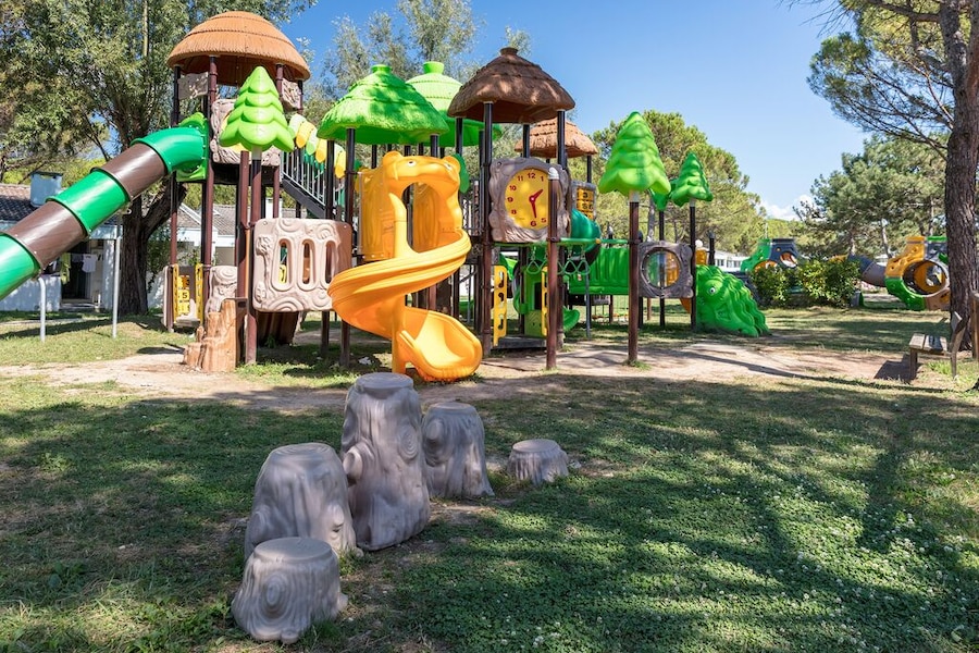 Na suchym lądzie również nie będziesz się nudzić. Kemping jest wyposażony w najlepsze udogodnienia i oferuje wiele możliwości rekreacji. Animacje dla dzieci, boiska sportowe, place zabaw i piękne trasy rowerowe i spacerowe wokół kempingu. Na zielonych polach jest mnóstwo drzew, dzięki czemu od czasu do czasu można uzyskać trochę cienia. Nie musisz opuszczać kempingu, aby zjeść pyszne śniadanie lub włoską pizzę, ponieważ jest do dyspozycji małe centrum handlowe z kilkoma sklepami, supermarketem i restauracją.